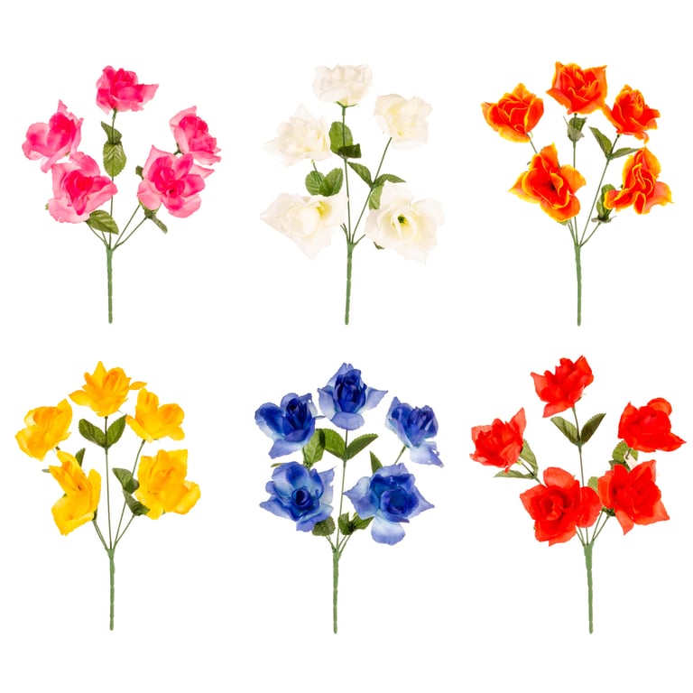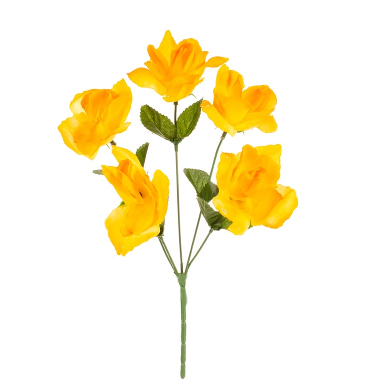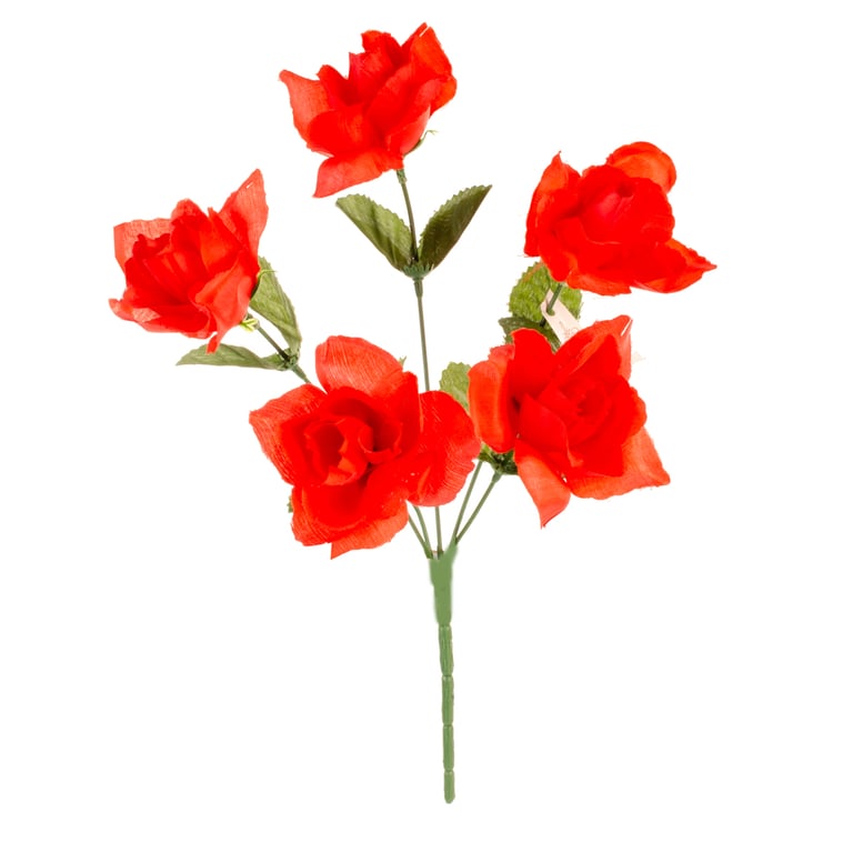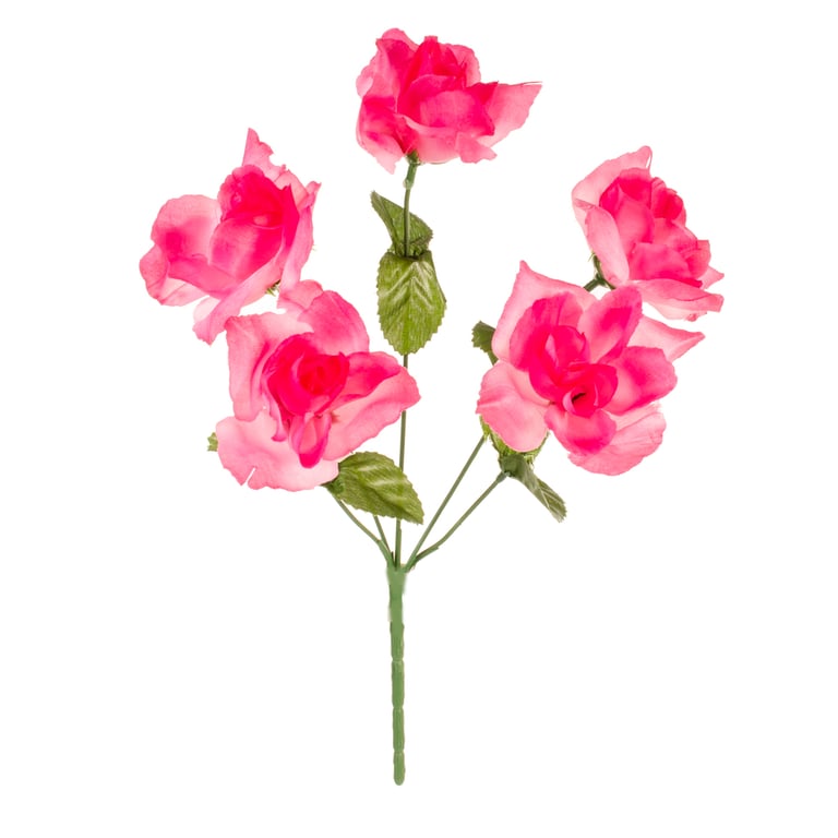 BUQUÊ ROSA X5 30 CM FOLHAS VERDES
