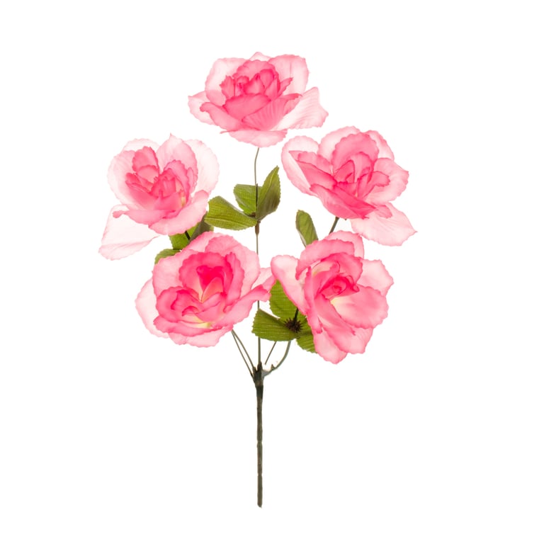 BUQUÊ ROSA X5 35 CM COM FOLHAS