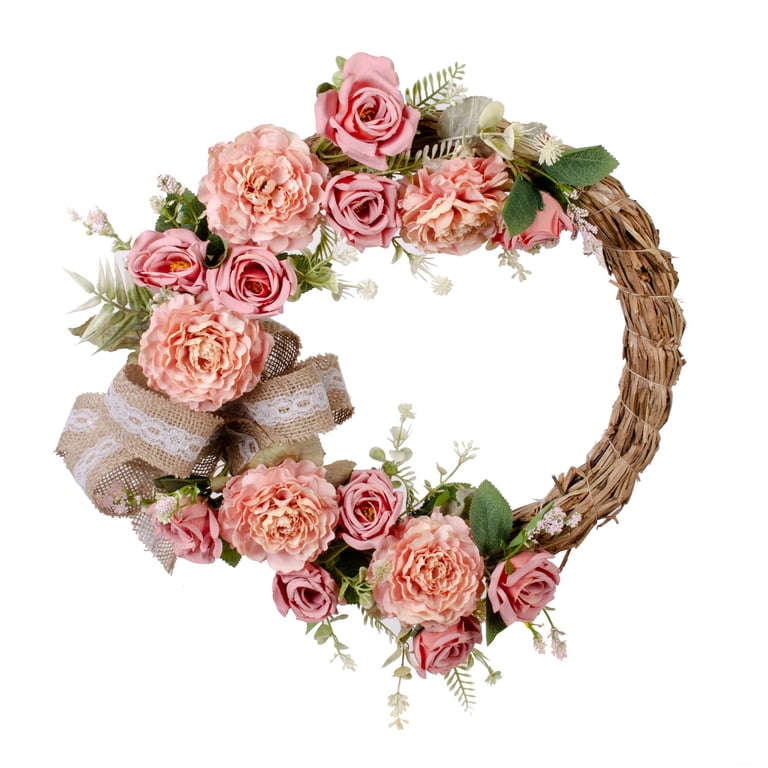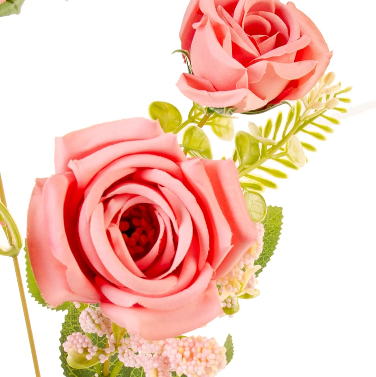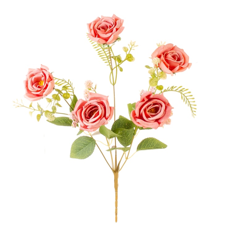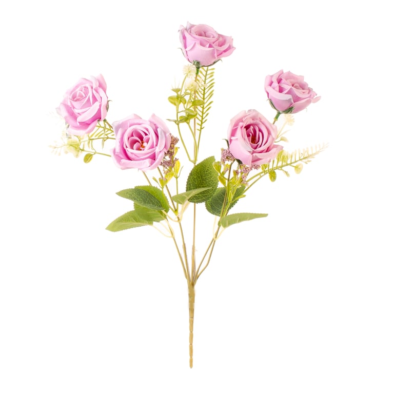 BUQUÊ ROSA X5 36 CM MIOLO AMARELO COM GIBSO E SAMAMBAIA