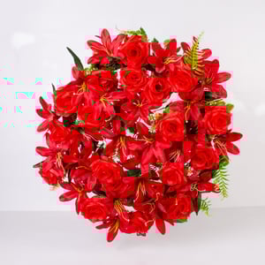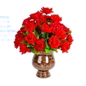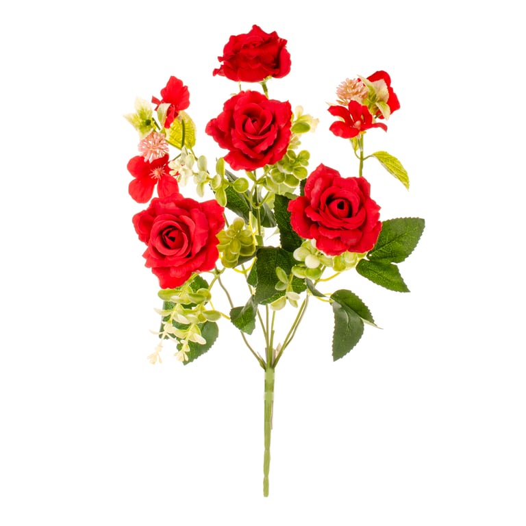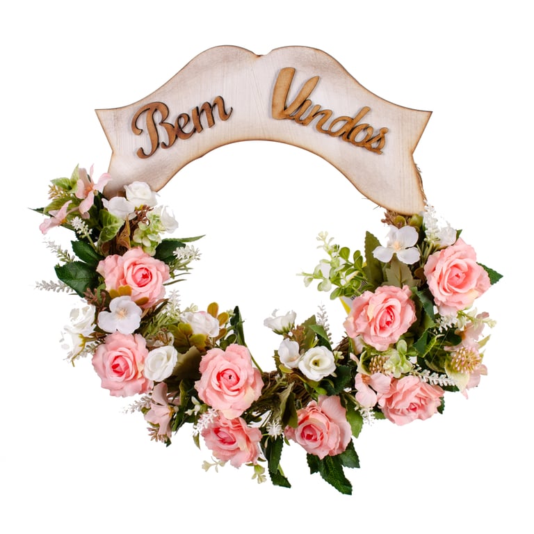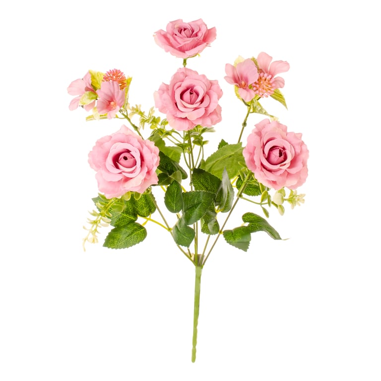 BUQUÊ ROSA X6 35 CM COM EUCALIPTO E SEMENTES