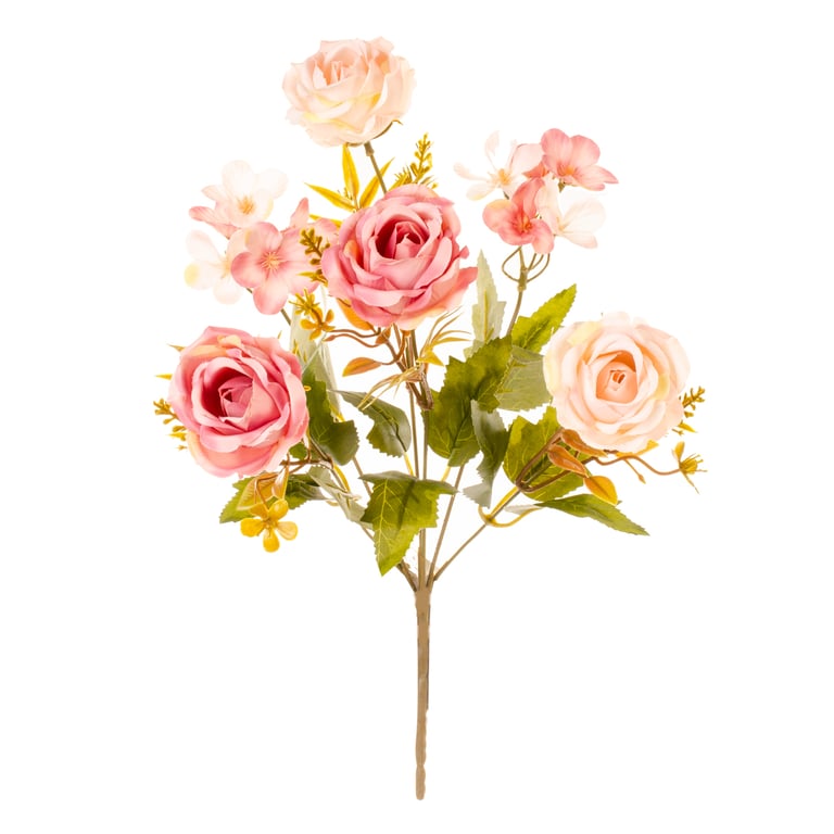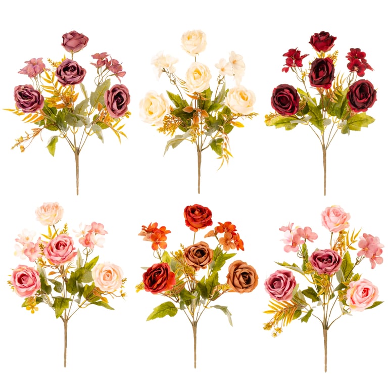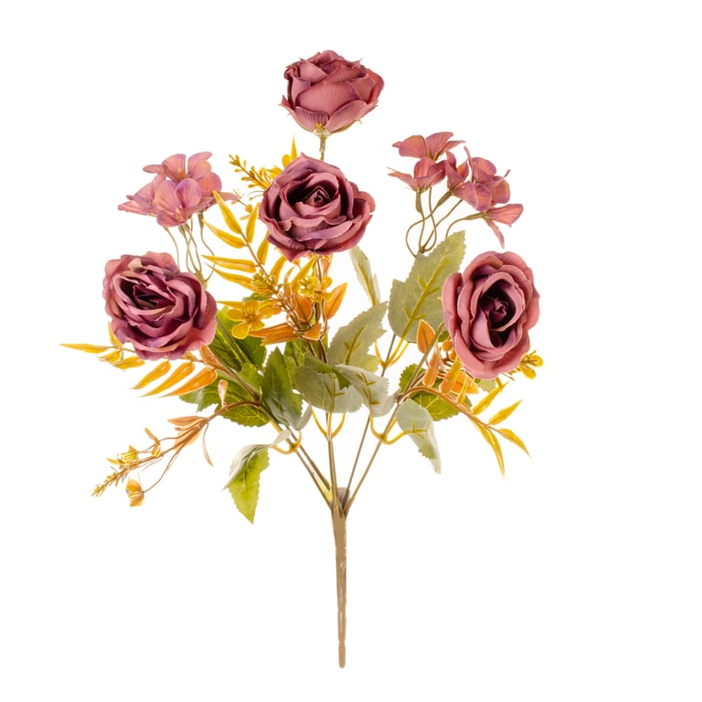 BUQUÊ ROSA X6 35 CM OUTONAL COM FLOR CAMPO