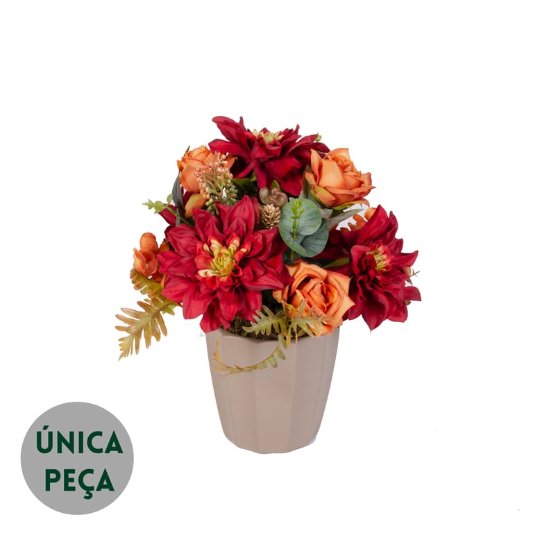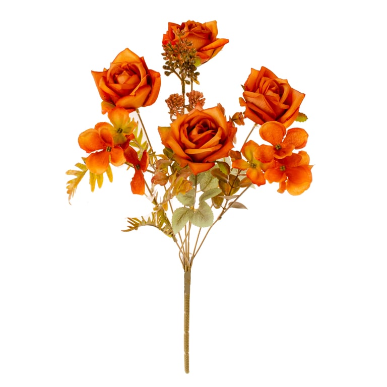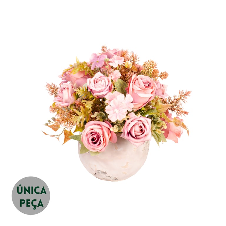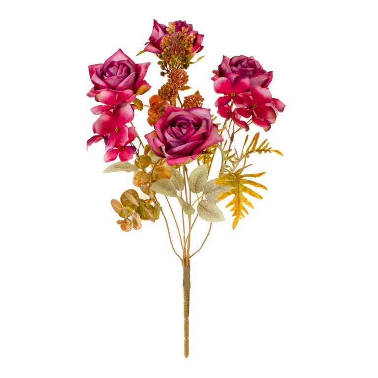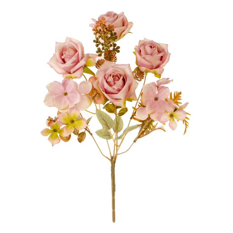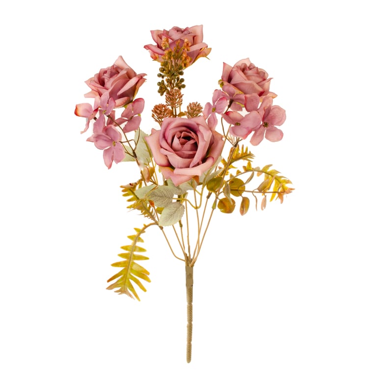 BUQUÊ ROSA X7 4 FLORE 43 CM COM HORTÊNSIA E SAMAMBAIA OUTONAL