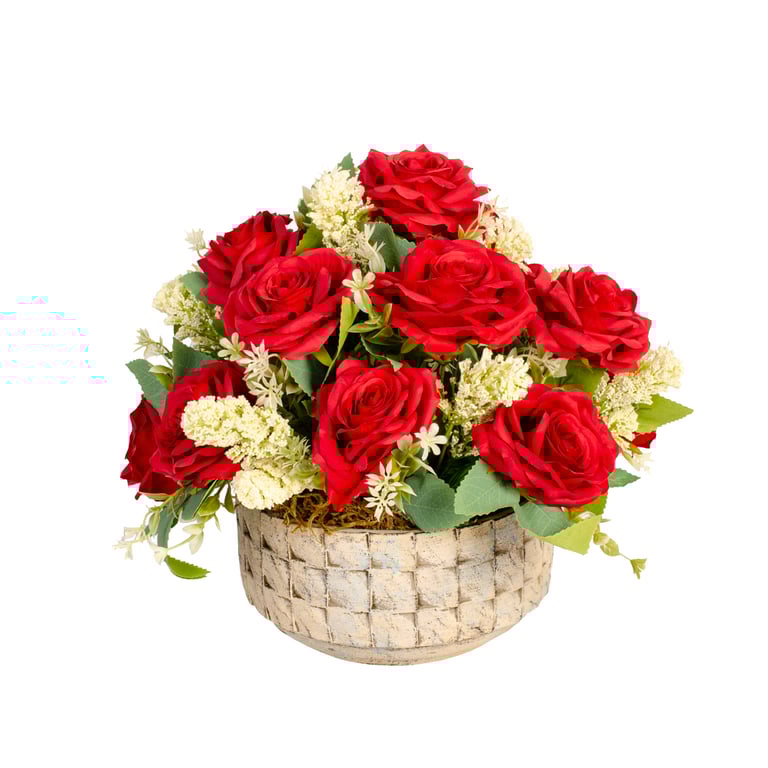 BUQUÊ ROSA X7 43 CM COM COMPLEMENTOS