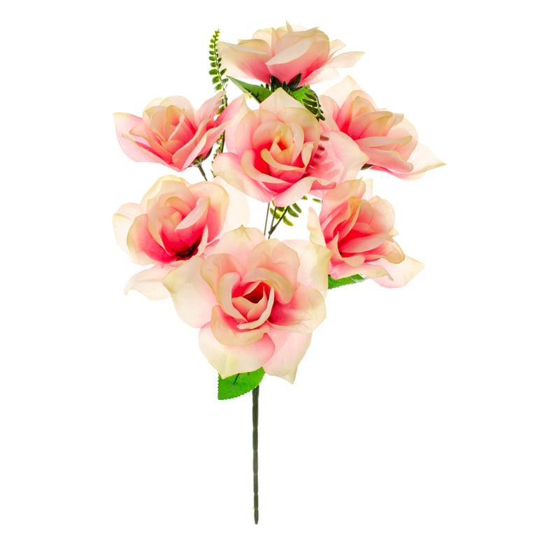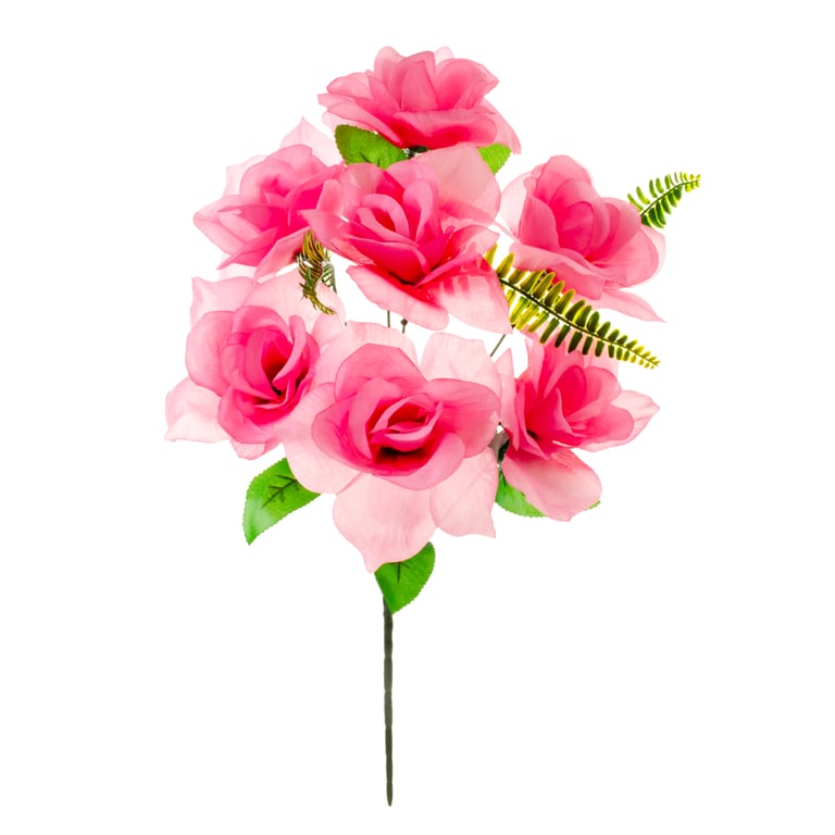 BUQUÊ ROSA X7 45 CM COM SAMAMBAIA