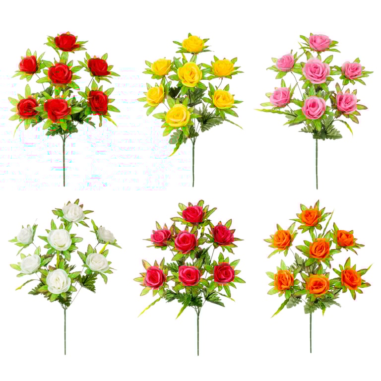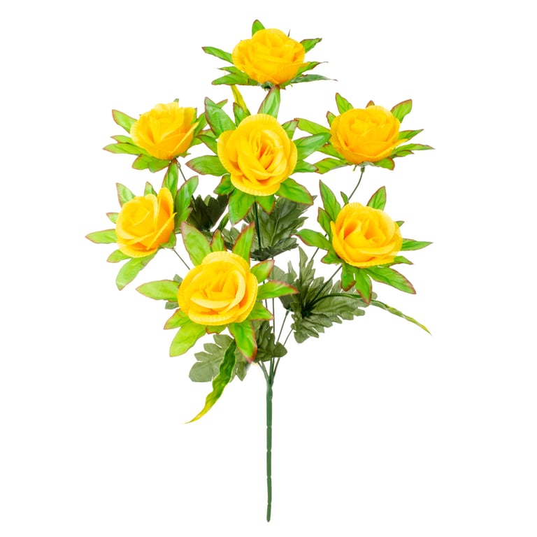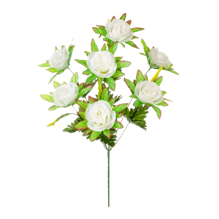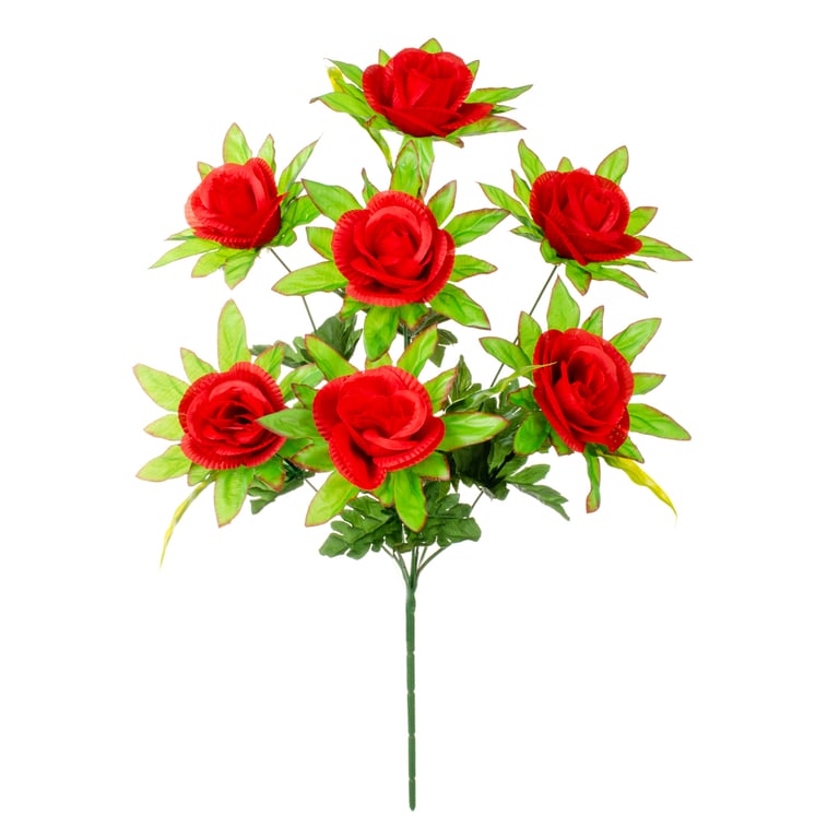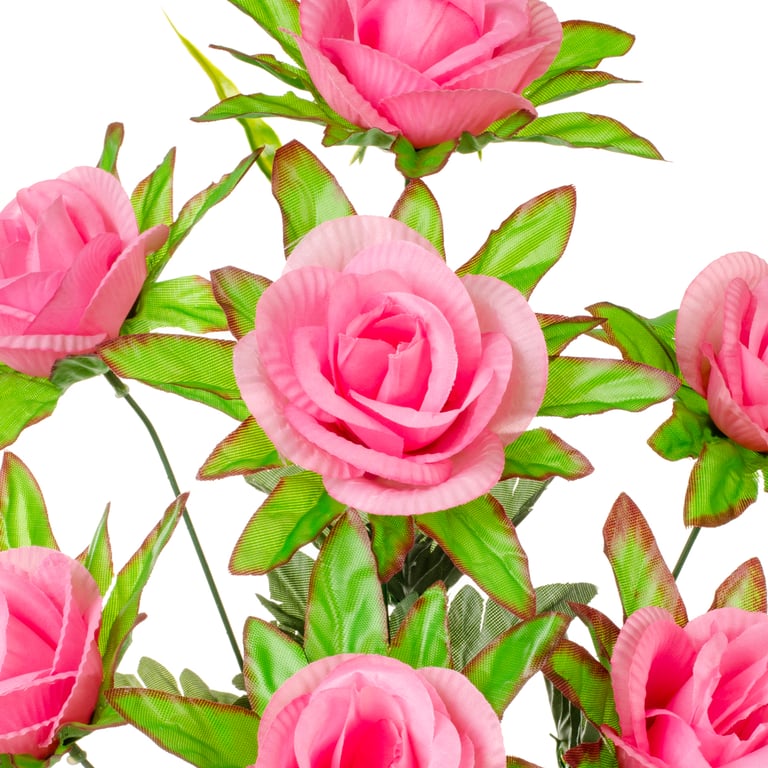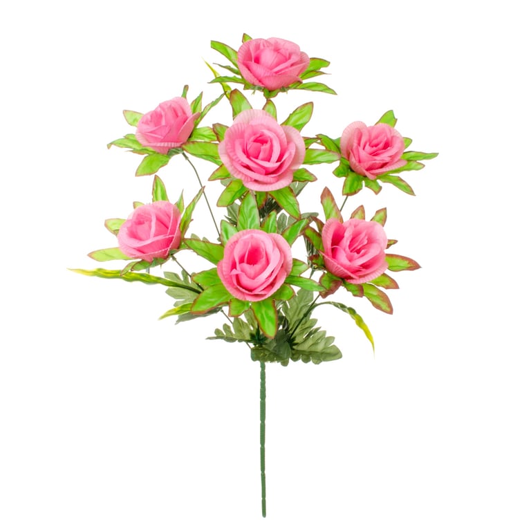 BUQUÊ ROSA X7 50 CM COM COMPLEMENTO FOLHAS PICOTEADAS