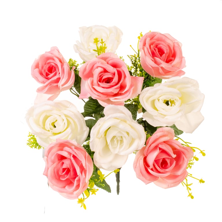 BUQUÊ ROSA X9 33 CM MESCLADO COM COMPLEMENTO