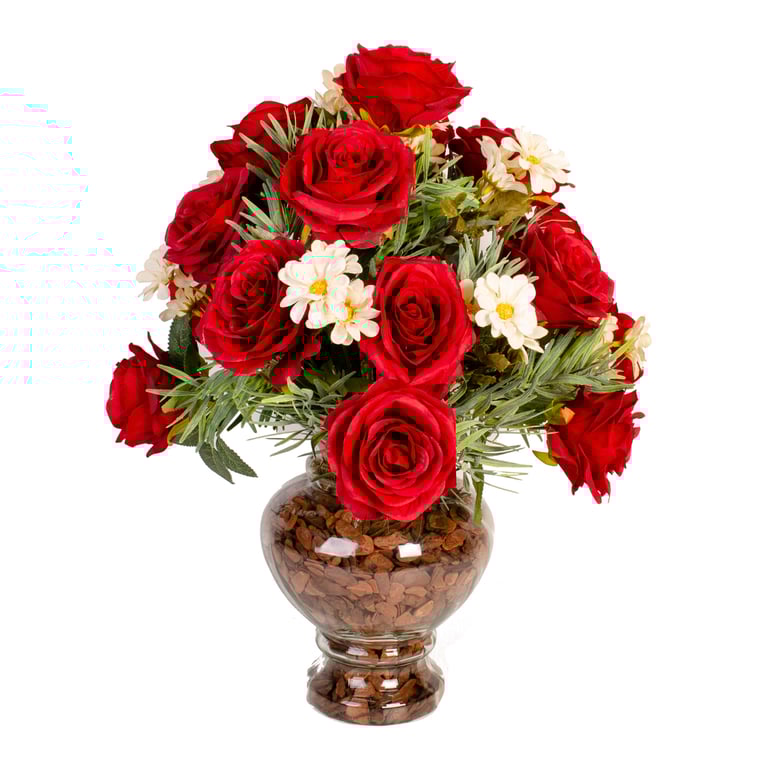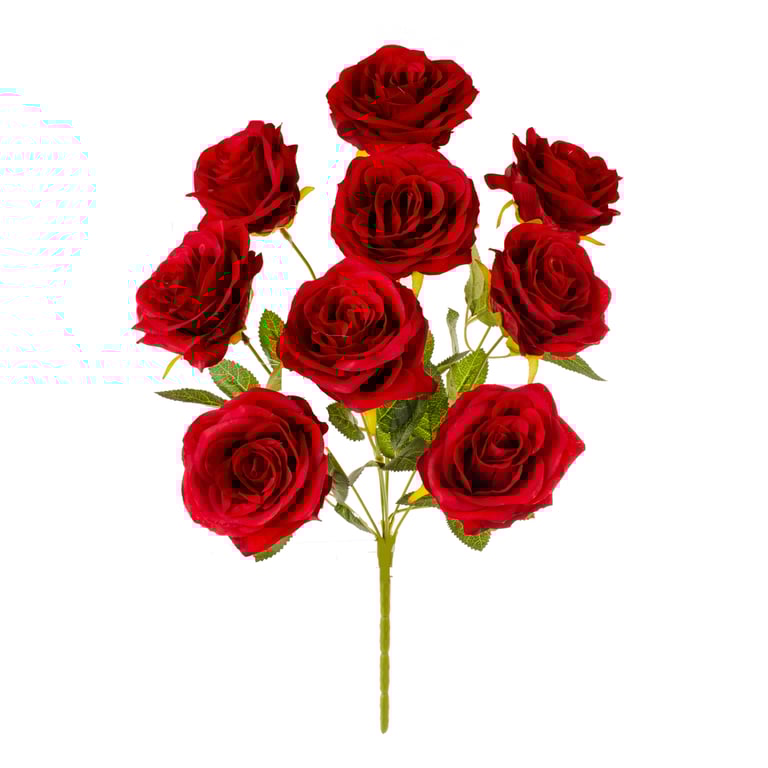 BUQUÊ ROSA X9 44 CM FOLHAS MESCLADAS