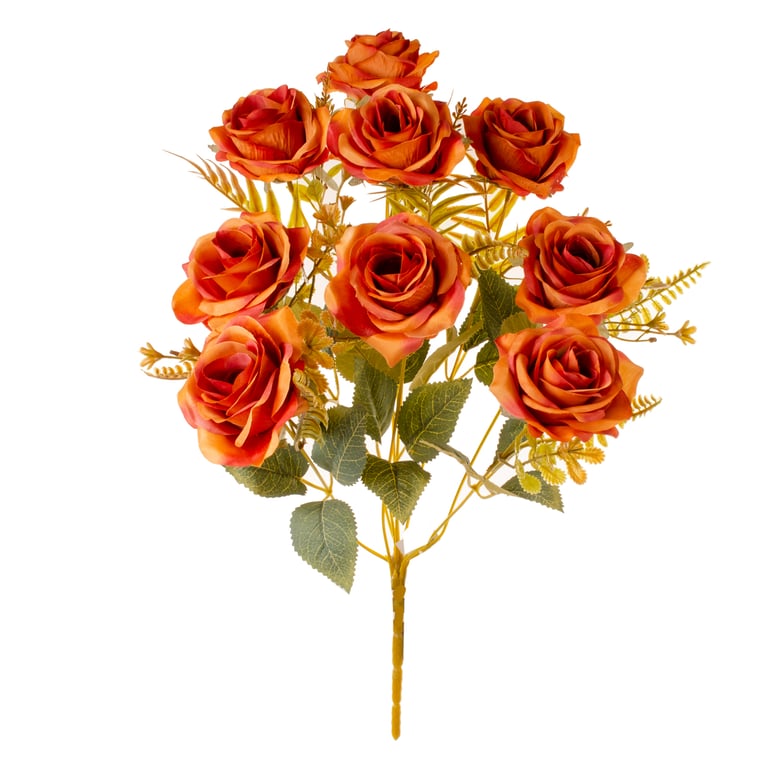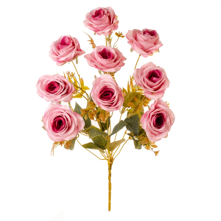 BUQUÊ ROSA X9 48 CM SAMAMBAIA E CAPIM OUTONAL
