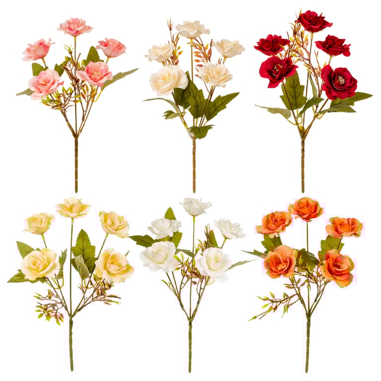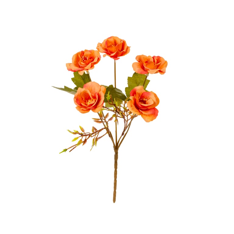 BUQUÊ ROSA X5 26 CM COM COMPLEMENTO FOLHAS PICOTEADAS