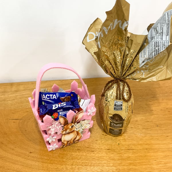CACHEPÔ / CESTO PÁSCOA 13X12X8,5 CM COM ALÇA FELTRO
