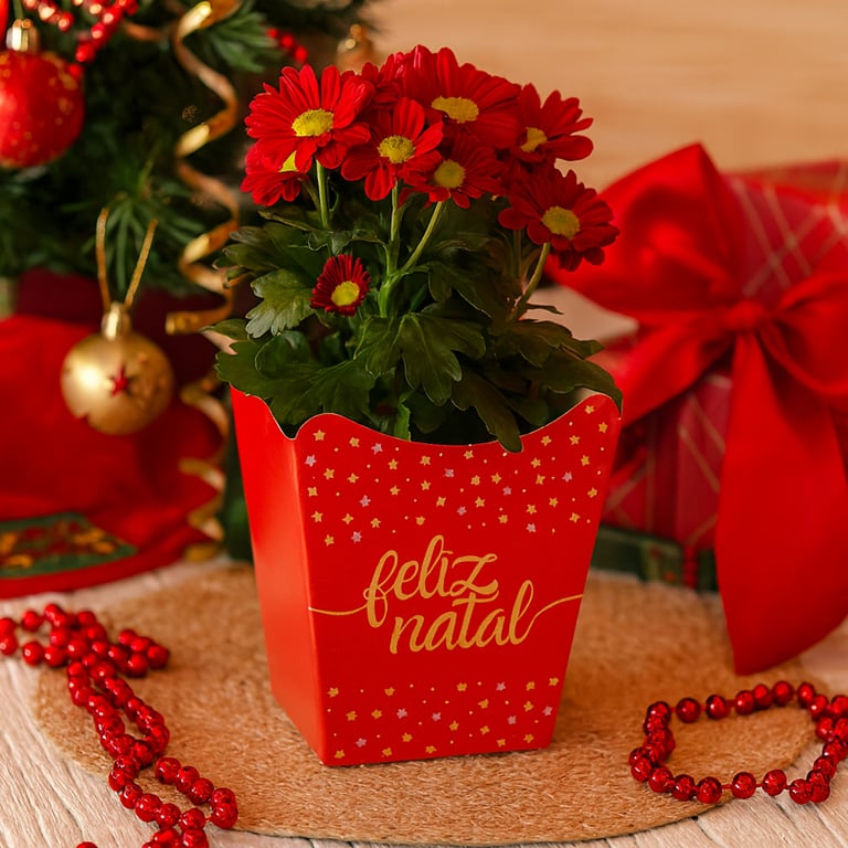 CACHEPÔ KRAFT CRISÂNTEMO 17X16X16 CM NATAL