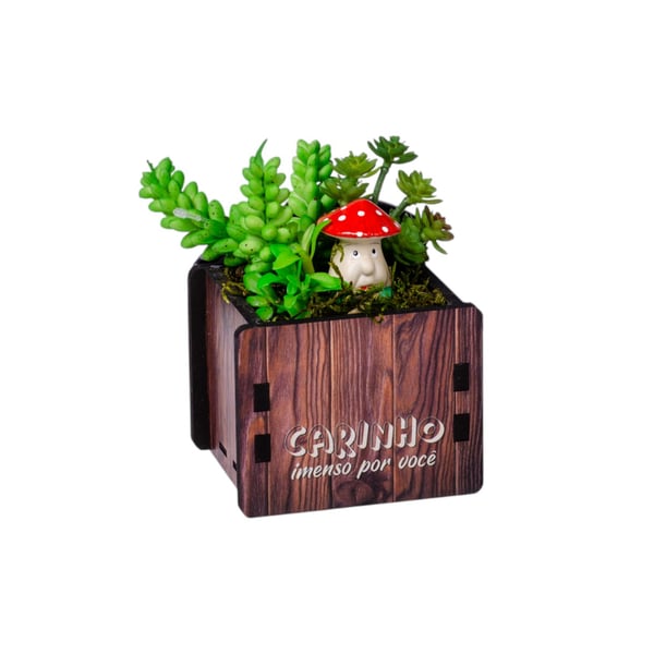 CACHEPÔ / VASO MADEIRA CACTOS 8X9,5X9 CM FRASES