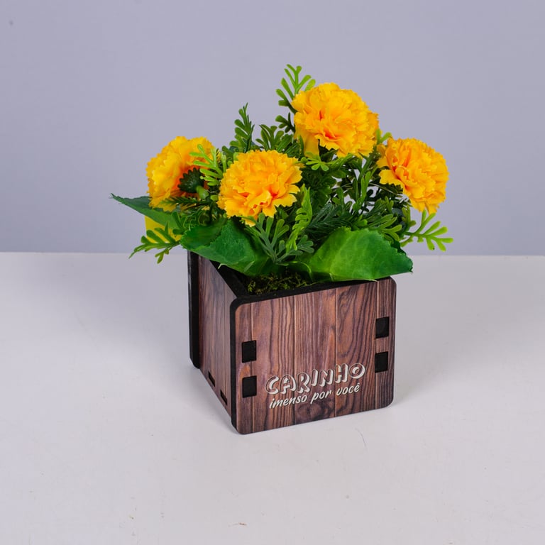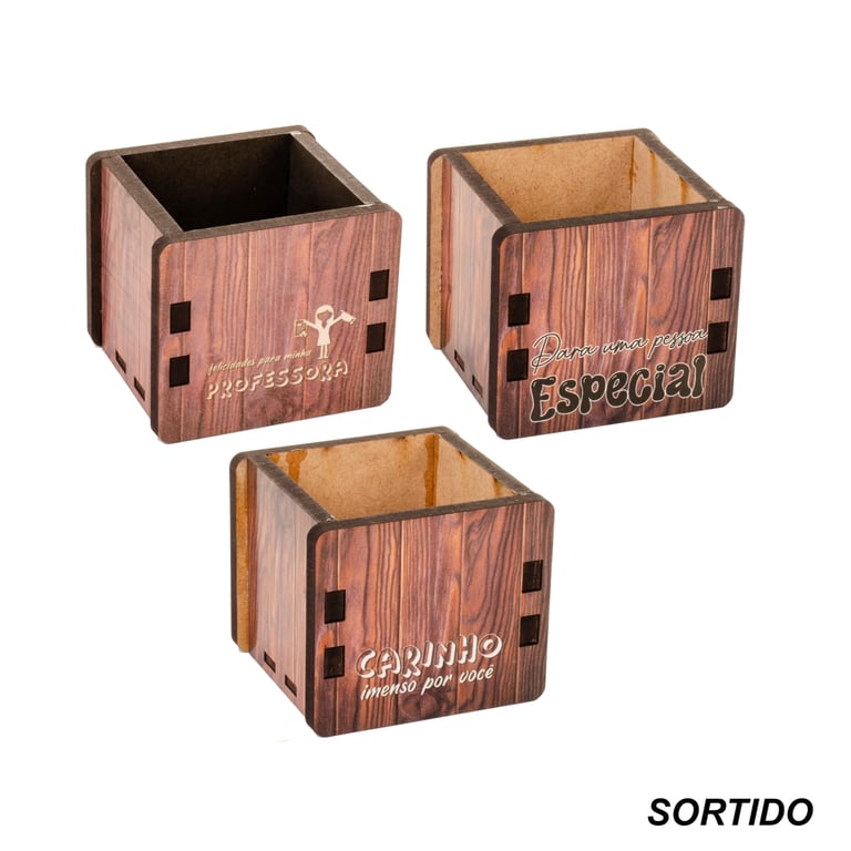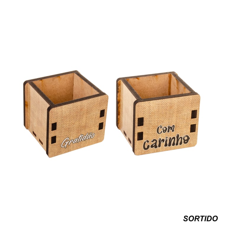 CACHEPÔ / VASO MADEIRA KALANCHOÊ 7X7,5X8 CM FRASES