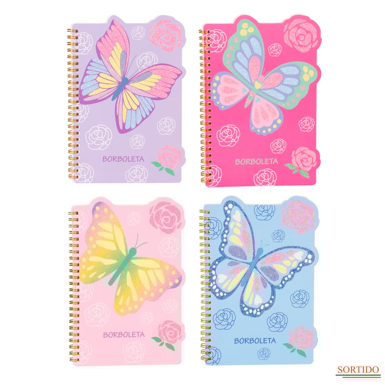 CADERNO / BLOCO ANOTAÇÃO 21X14 CM 60 FOLHAS ESPIRAL UNICÓRNIO / BORBOLETA