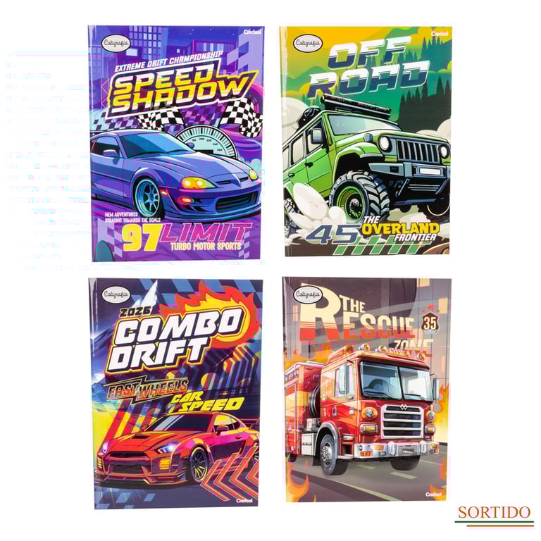 CADERNO DE CALIGRAFIA UNIVERSITÁRIO 40 FOLHAS BROCHURA COSTURADO SUPER CARS CAPA DURA