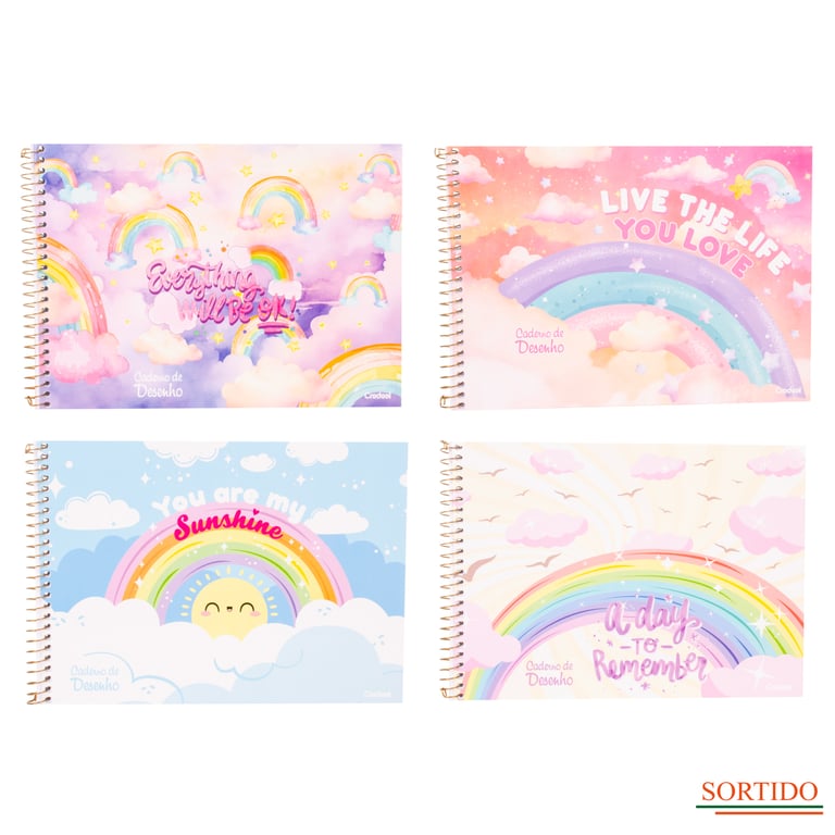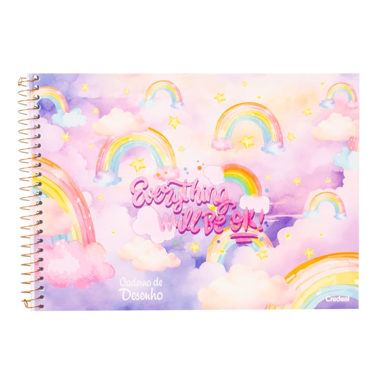 CADERNO DESENHO 80 FOLHAS UNIVERSITÁRIO ESPIRAL ARCO-ÍRIS CAPA DURA