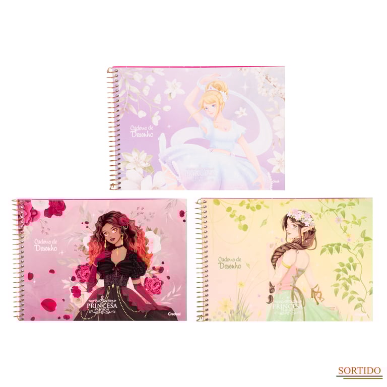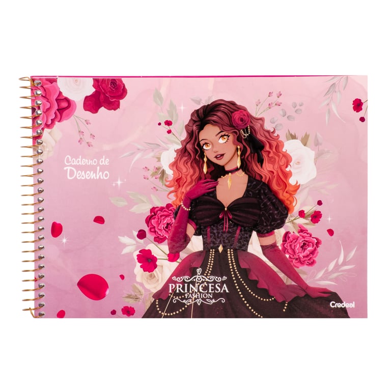 CADERNO DESENHO 80 FOLHAS UNIVERSITÁRIO ESPIRAL PRINCESA FASHION CAPA DURA