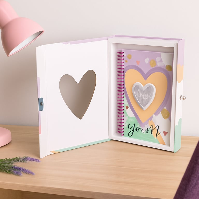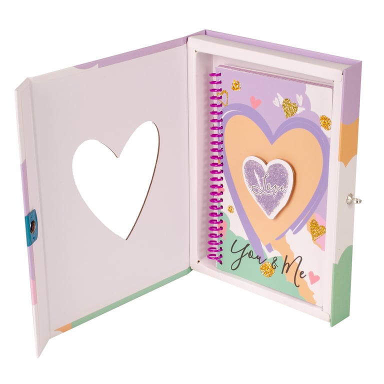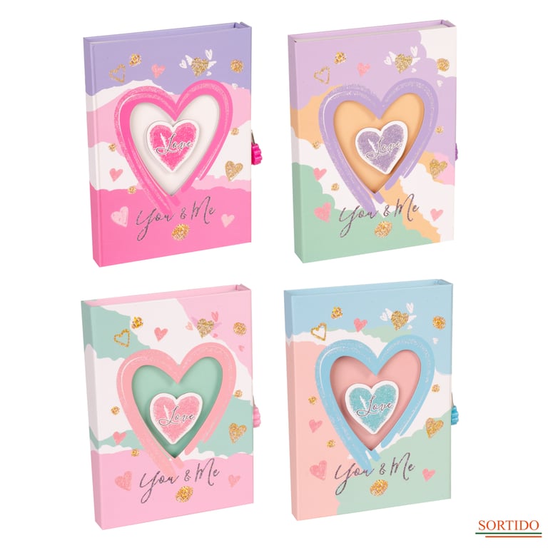 CADERNO / DIÁRIO 17,6X11 CM 60 FOLHAS COM CAIXA E CADEADO CORAÇÃO