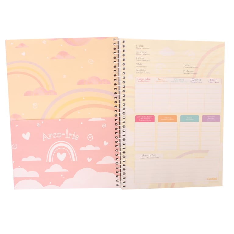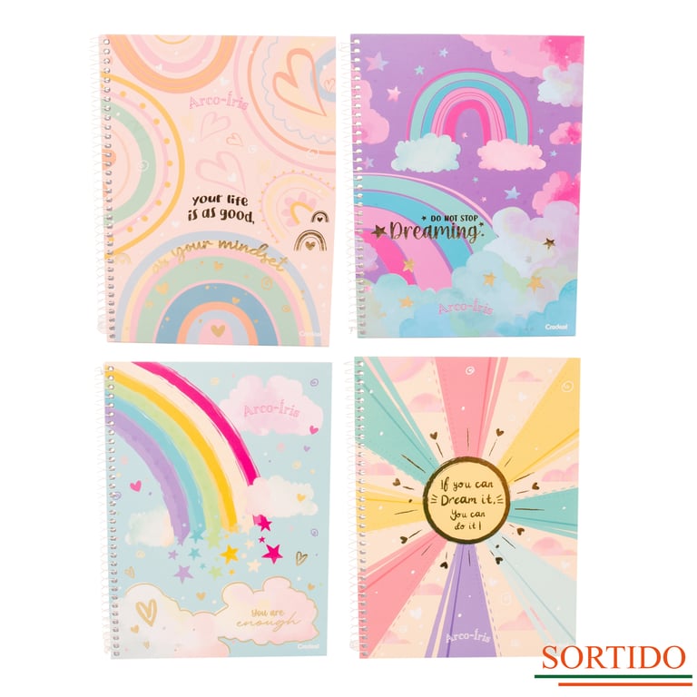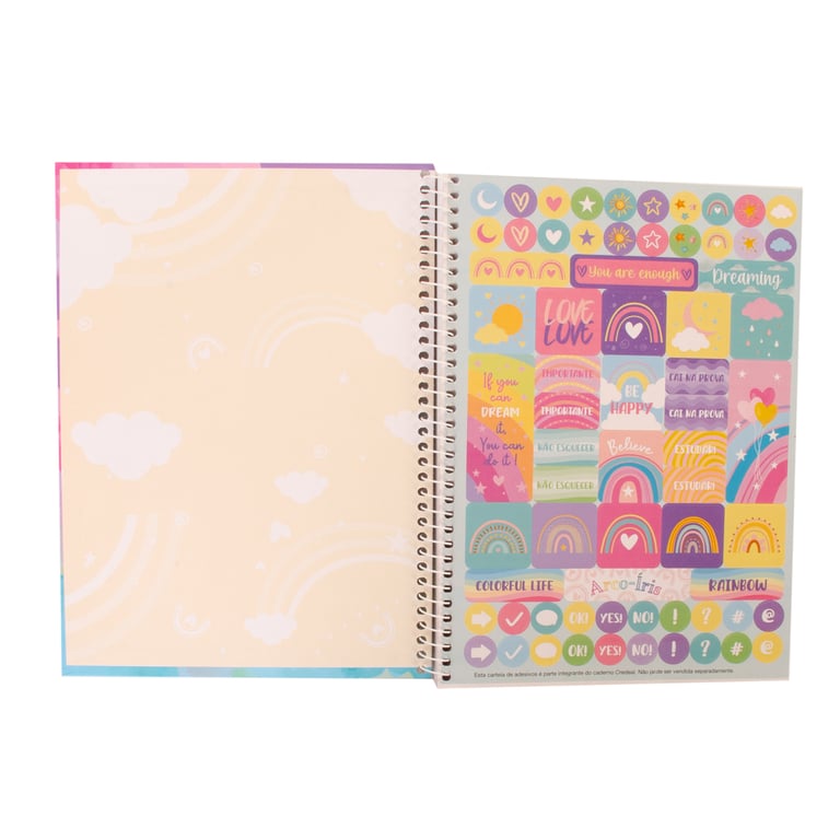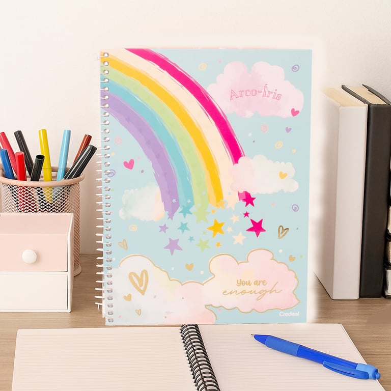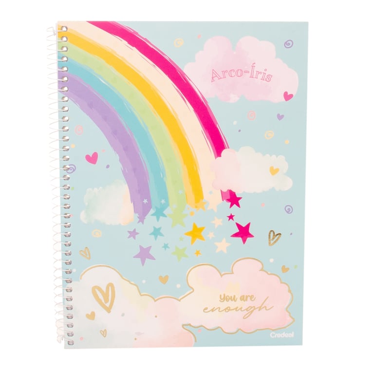 CADERNO UNIVERSITÁRIO 80 FOLHAS 1 MATÉRIA ESPIRAL ARCO-ÍRIS CAPA DURA