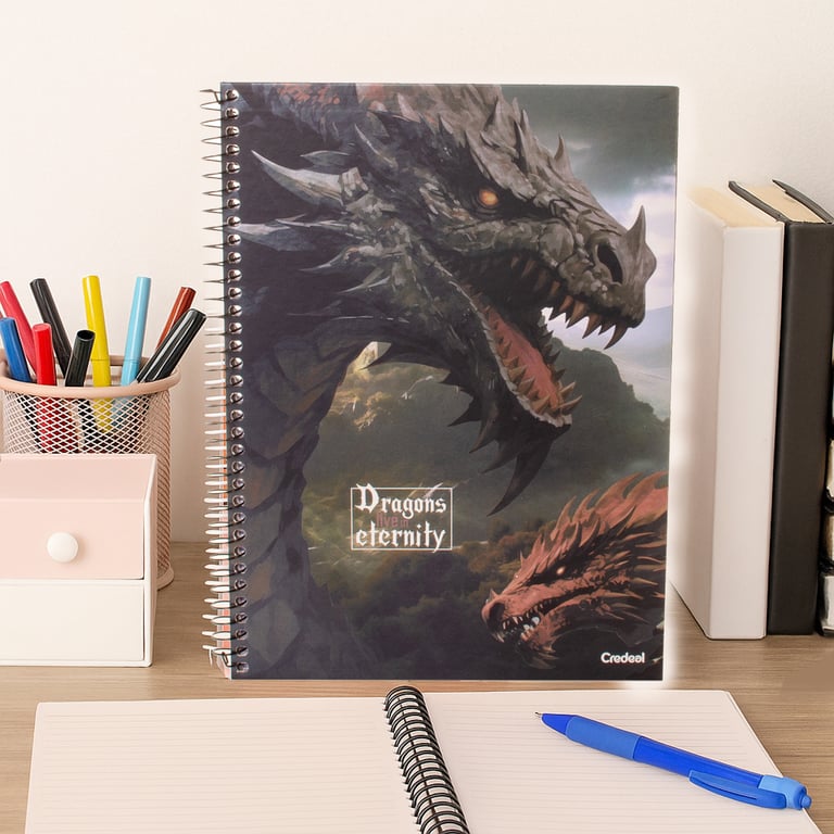 CADERNO UNIVERSITÁRIO 80 FOLHAS 1 MATÉRIA ESPIRAL AVENTURA COM DRAGÕES CAPA DURA