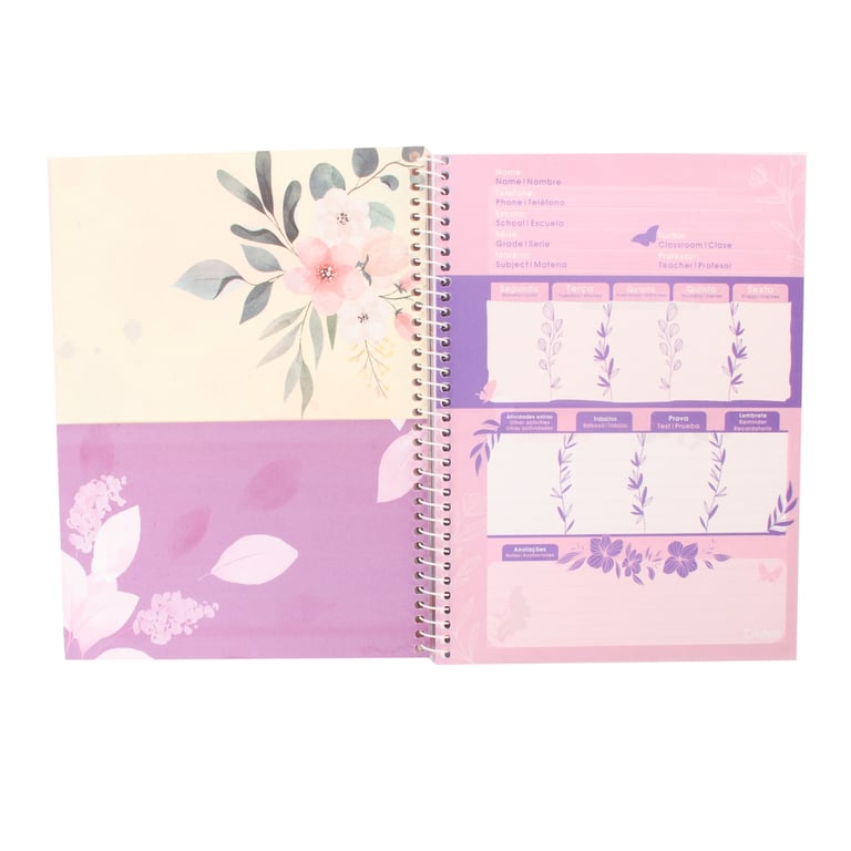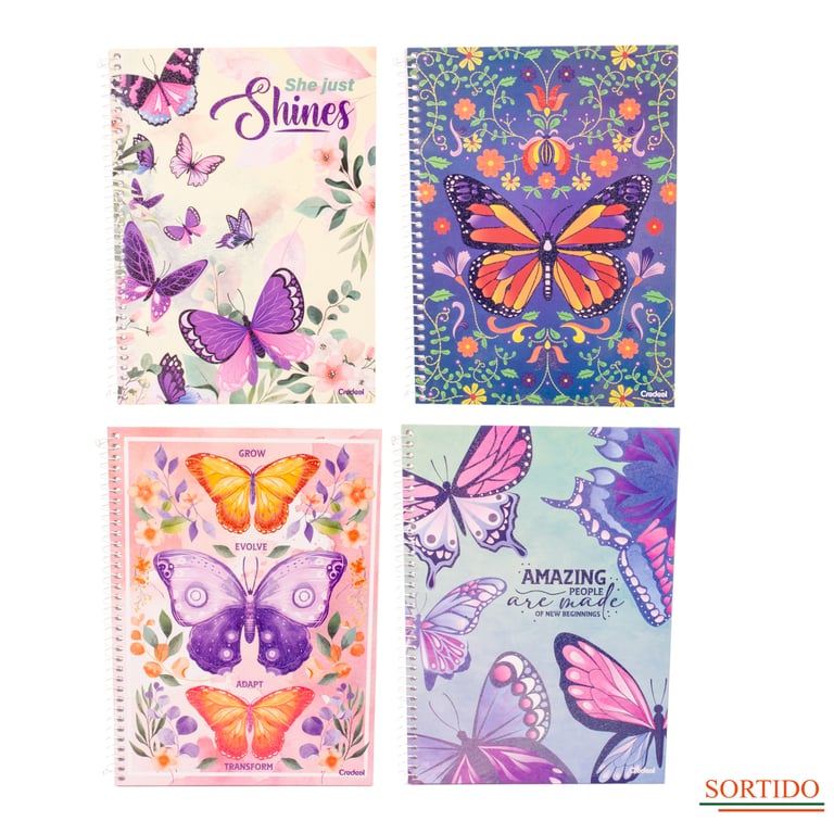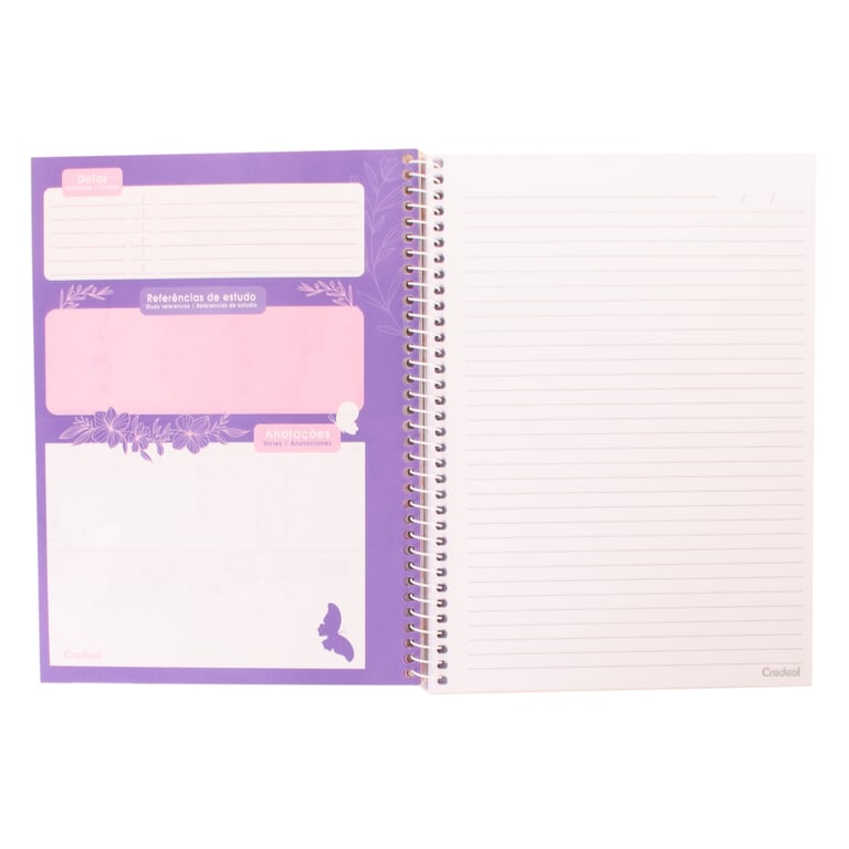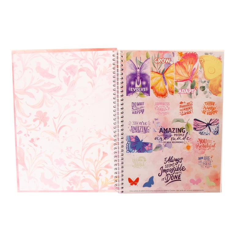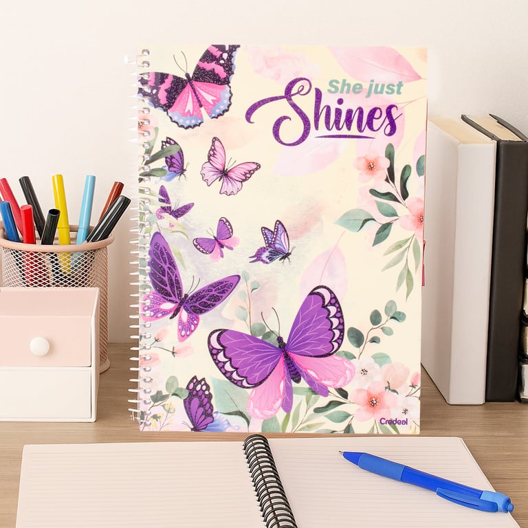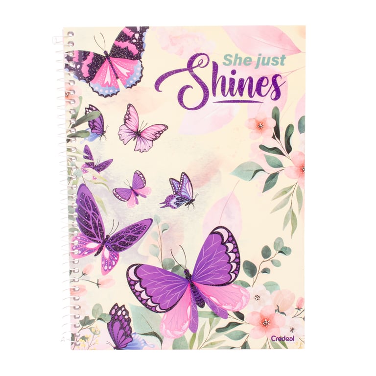 CADERNO UNIVERSITÁRIO 80 FOLHAS 1 MATÉRIA ESPIRAL PURPURINA BORBOLETA CAPA DURA