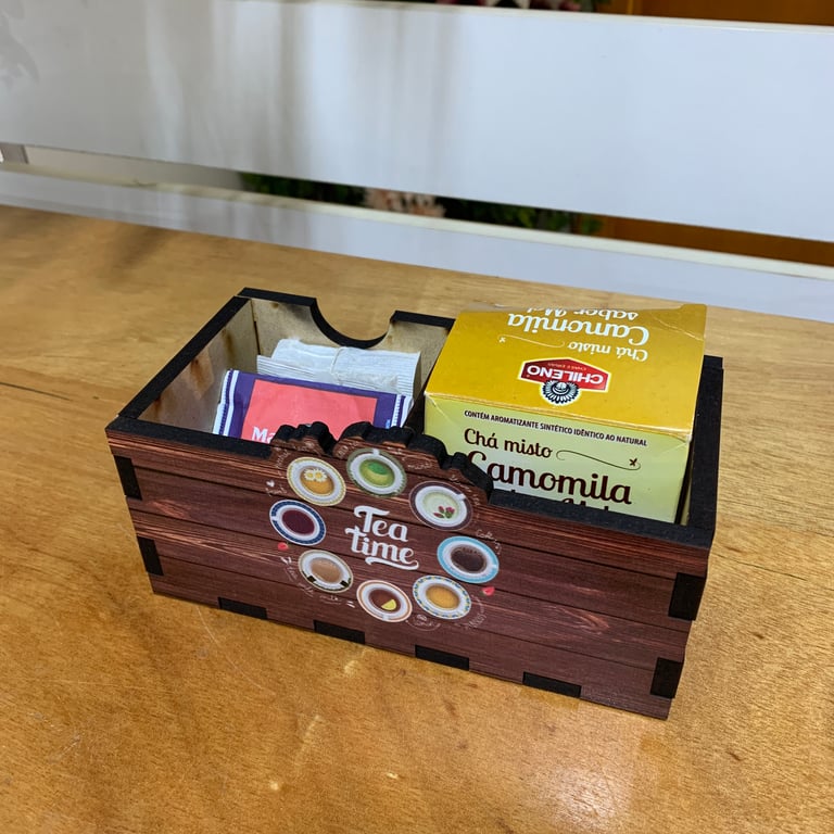 CAIXA MADEIRA 6,5X15,5X8 CM CHÁ COM DIVISÓRIA