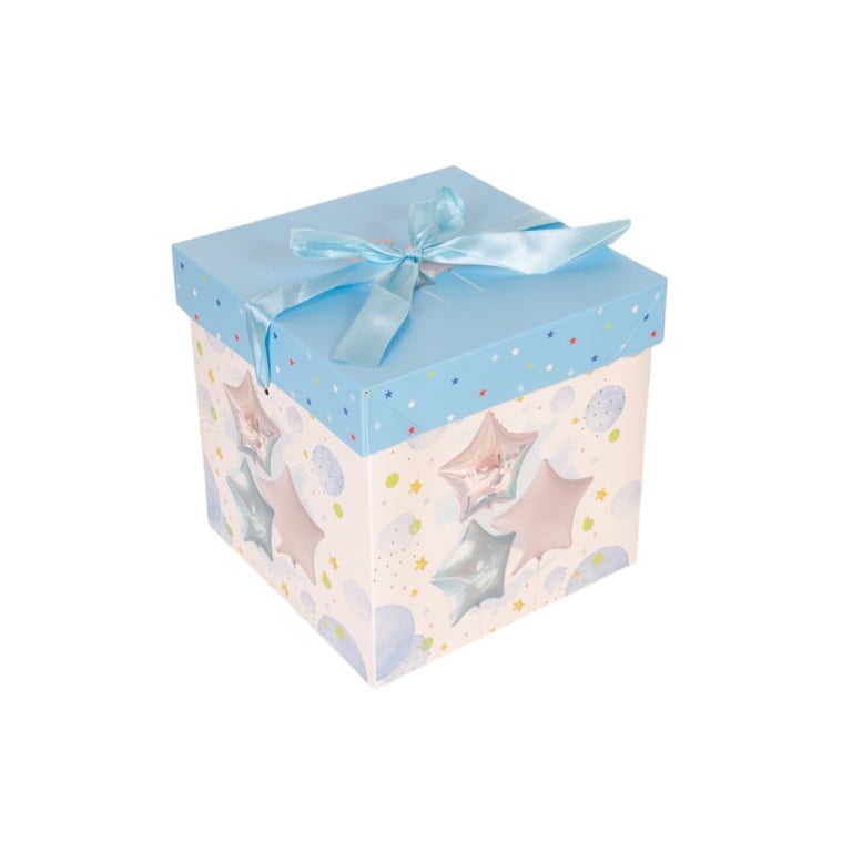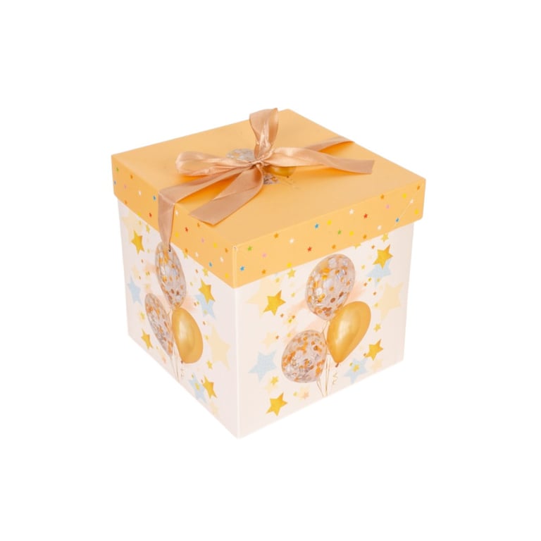 CAIXA QUADRADA 15X15X15 CM BALÕES COM LAÇO FLEXÍVEL