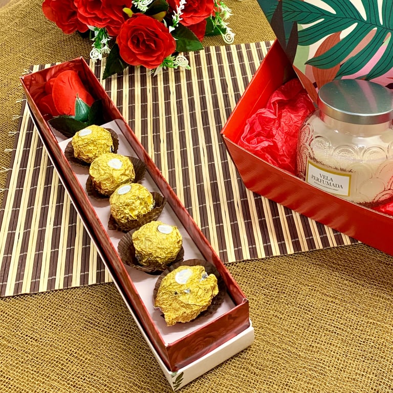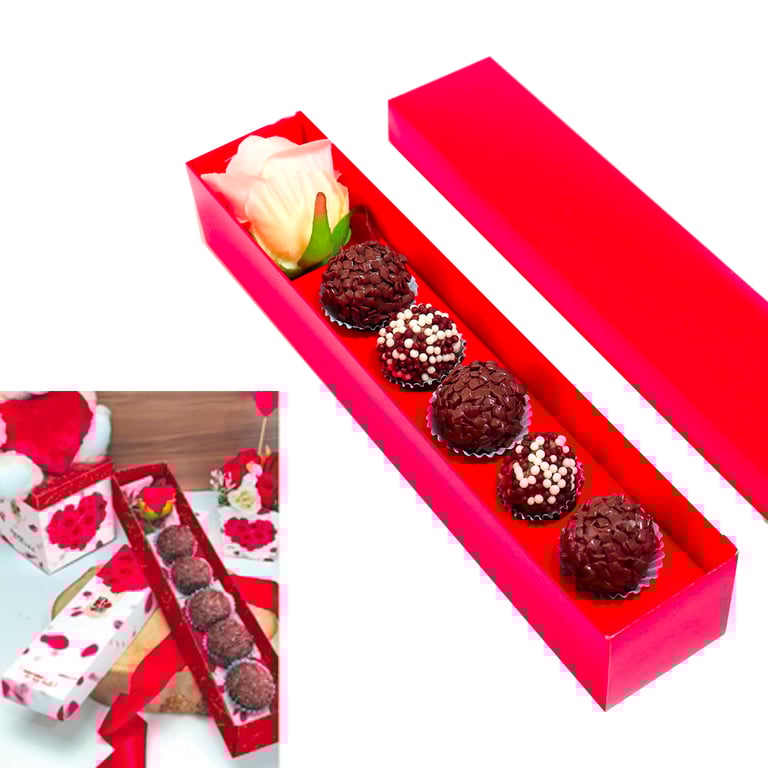 CAIXA RETANGULAR 5,5X6,5X32 CM PARA DOCES E FLOR ACOPLADA