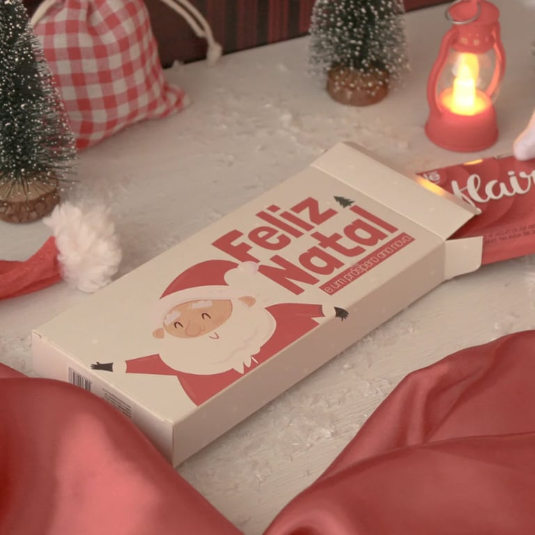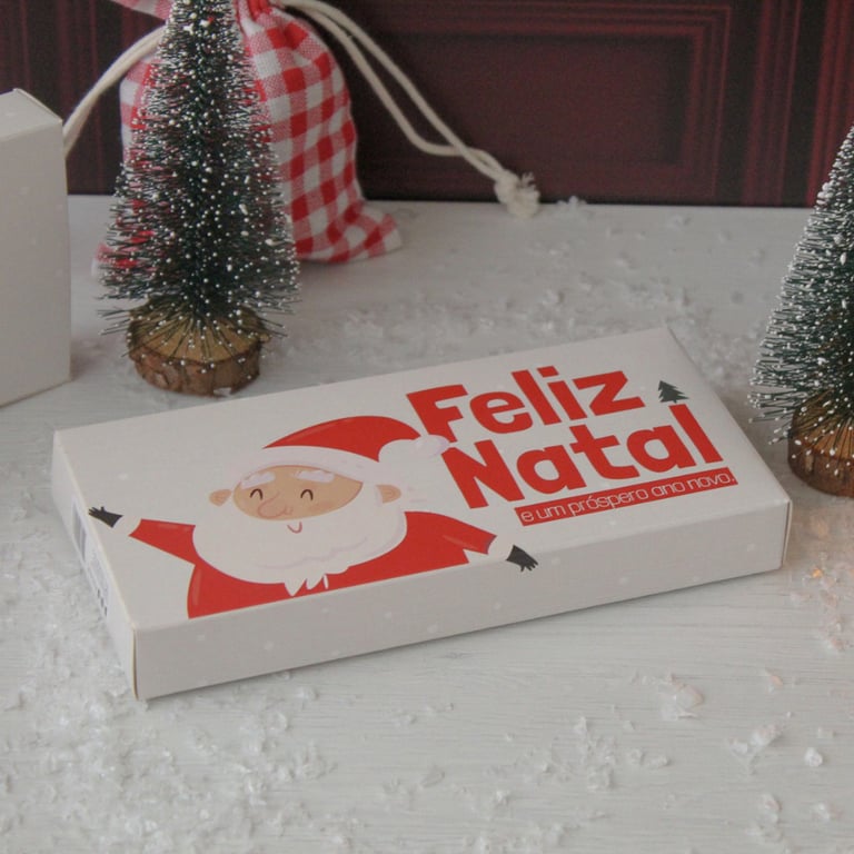 CAIXA RETANGULAR 9X20X2,5 CM FELIZ NATAL PARA BARRA DE CHOCOLATE