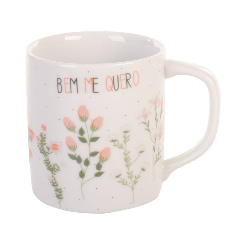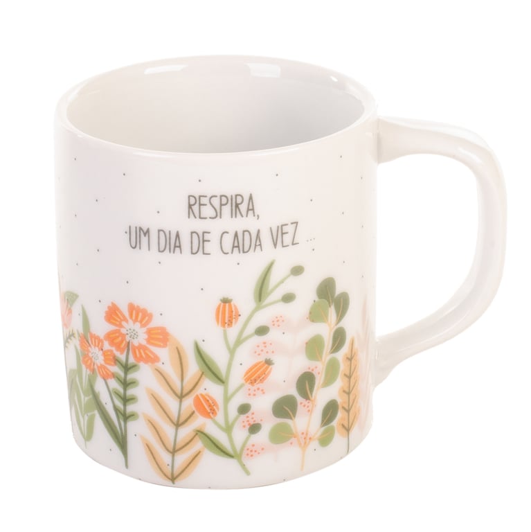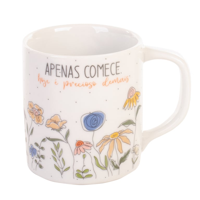 CANECA / XÍCARA 300 ML PORCELANA FRASES FLORAL