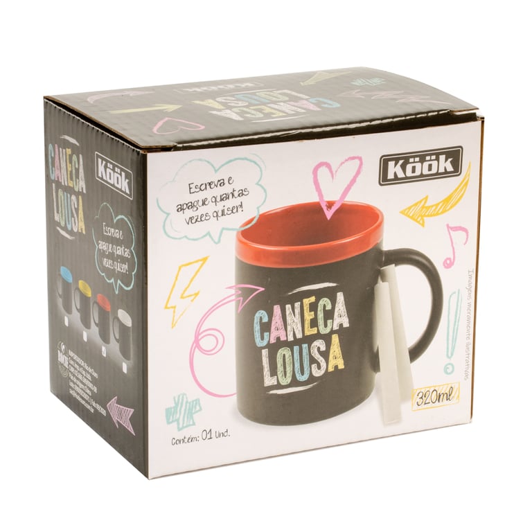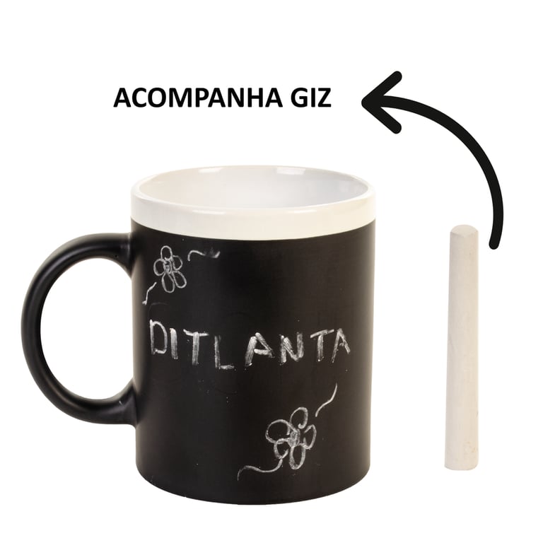 CANECA / XÍCARA CERÂMICA 320 ML LOUSA / QUADRO NEGRO COM GIZ