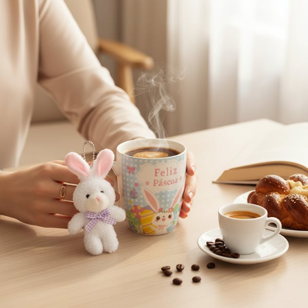 CANECA / XÍCARA PORCELANA 300 ML COM COELHO PELÚCIA