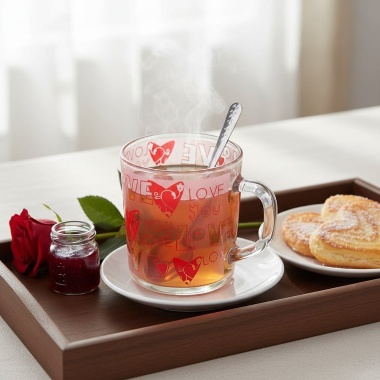 CANECA / XÍCARA VIDRO 220 ML COM COLHER AMOR