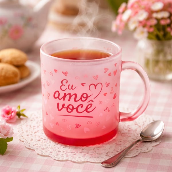 CANECA / XÍCARA VIDRO 320 ML EU AMO VOCÊ VERMELHA FOSCA