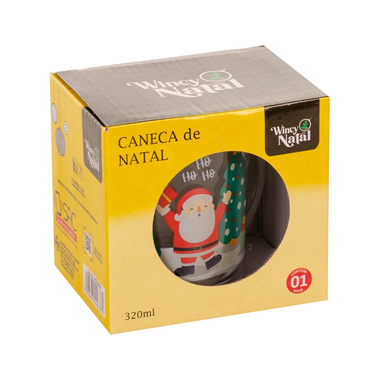 CANECA / XÍCARA VIDRO 320 ML FELIZ NATAL