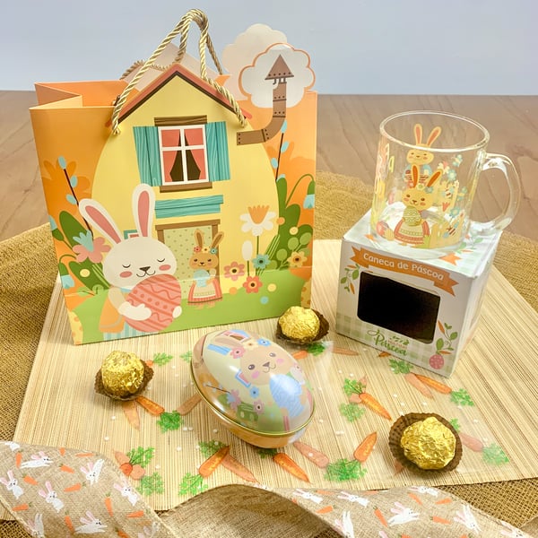 CANECA / XÍCARA VIDRO 320 ML PÁSCOA DECORADA