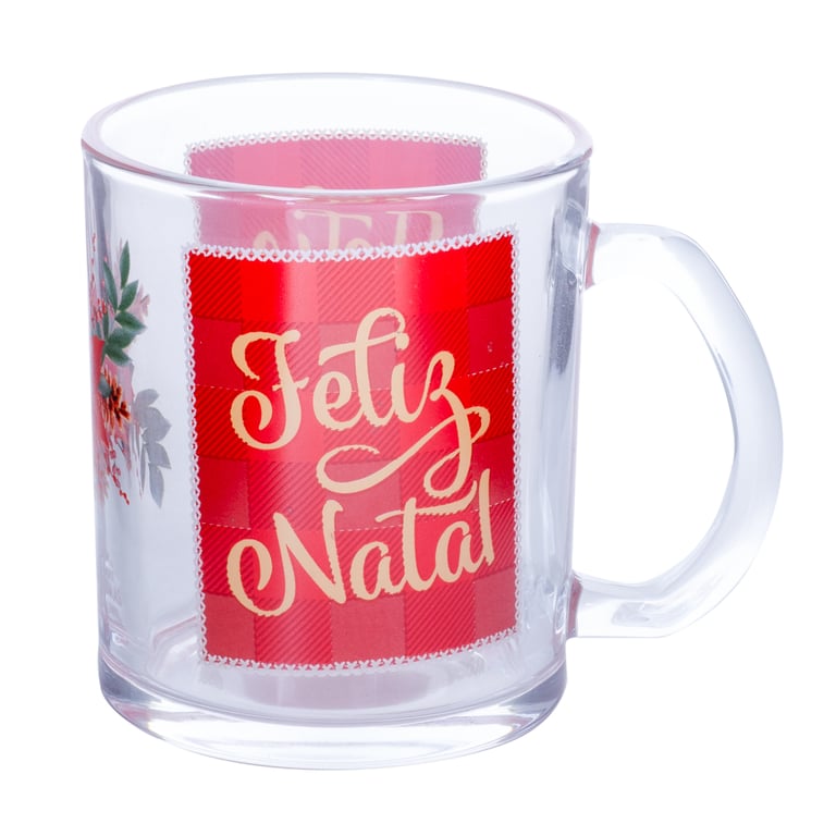 CANECA / XÍCARA VIDRO 330 ML NATALINA XADREZ