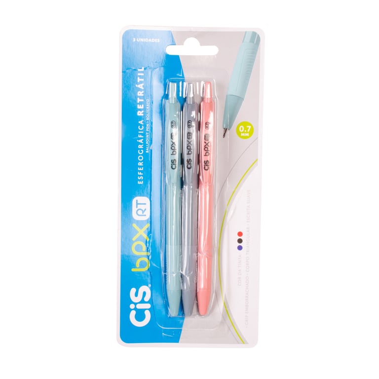 CANETA ESFEROGRÁFICA 0.7 MM 3 PEÇAS PONTA FINA BPX