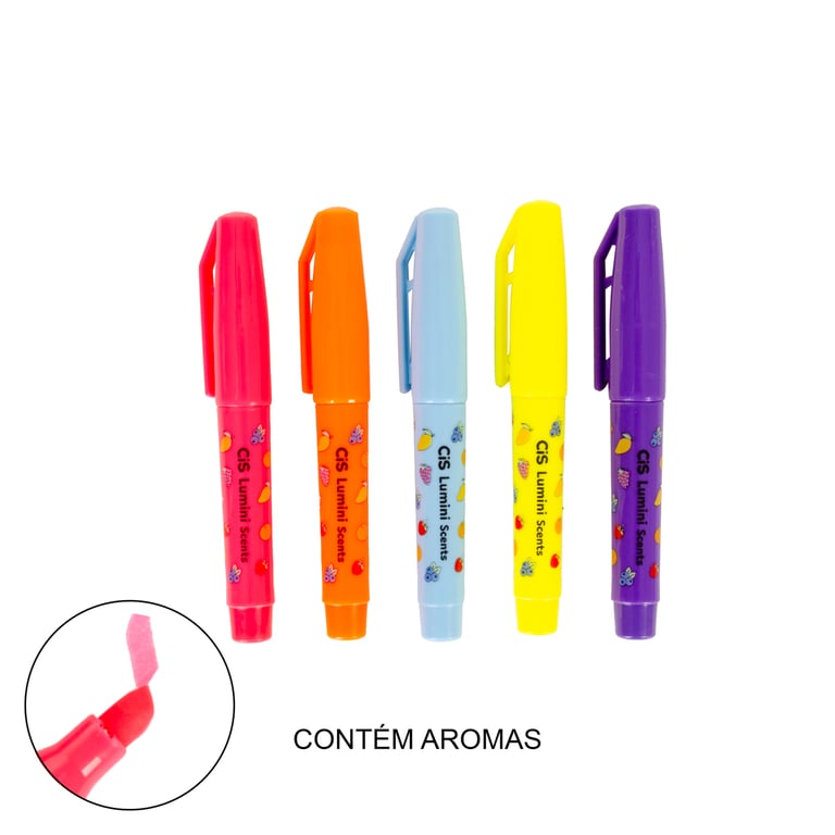 CANETA MARCA TEXTO 5 CORES NEON COM AROMA