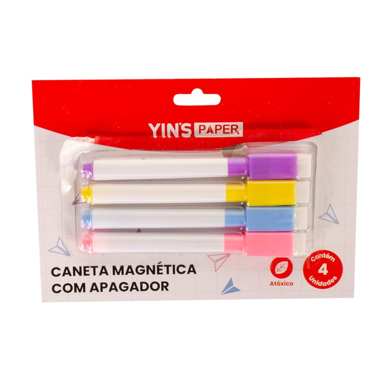 CANETA PARA QUADRO BRANCO COM APAGADOR 4 CORES MAGNÉTICA