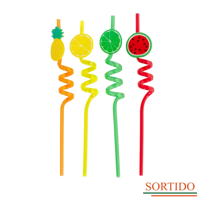 CANUDO PLÁSTICO 2 PEÇAS 26 CM ESPIRAL FRUTAS