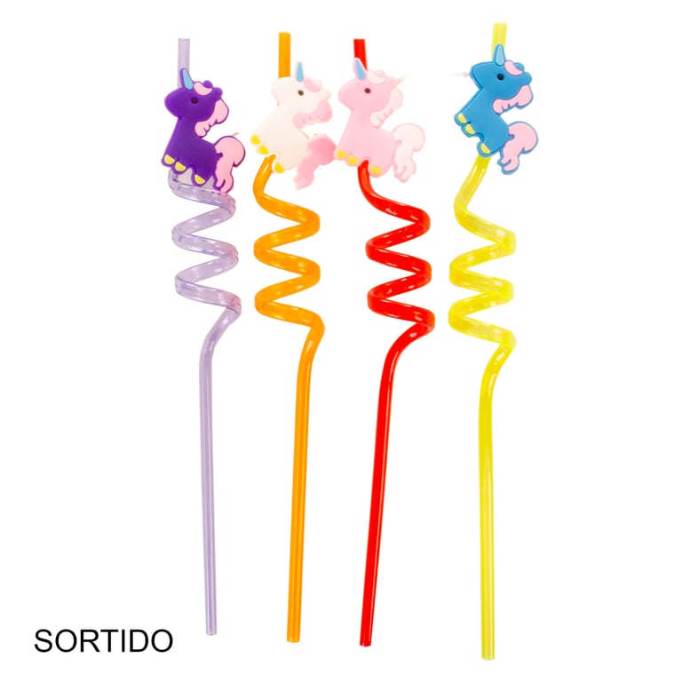 CANUDO PLÁSTICO 26 CM ESPIRAL UNICÓRNIO UNITÁRIO