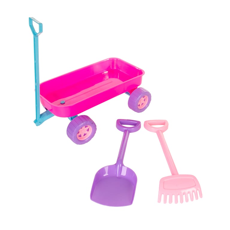 CARRO DE PUXAR 15X28X40 CM COM PÁ E RASTELO BABY LOVE
