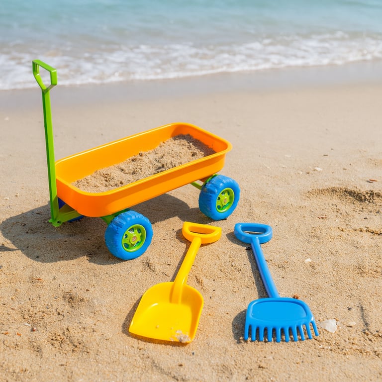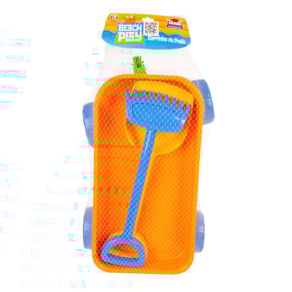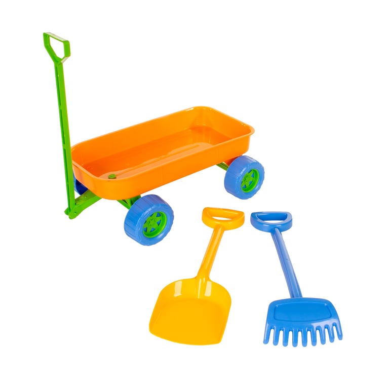 CARRO DE PUXAR 15X28X40 CM COM PÁ E RASTELO BEACH PLAY