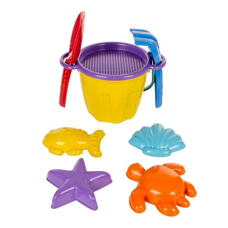 ACOMPANHA 1 BALDE, 1 PENEIRA, 1 REGADOR, 1 PÁ, 1 RASTELO E 4 FORMAS.