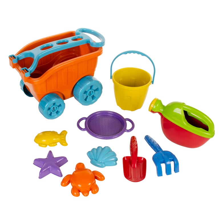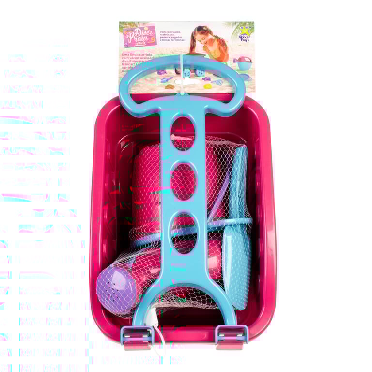 CARRO DIVER DE PUXAR 22X20X30 CM COM BALDE REGADOR E ACESSÓRIOS