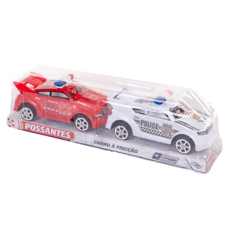 CARRO POLÍCIA E BOMBEIRO 6X7X14 CM 2 PEÇAS FRICÇÃO