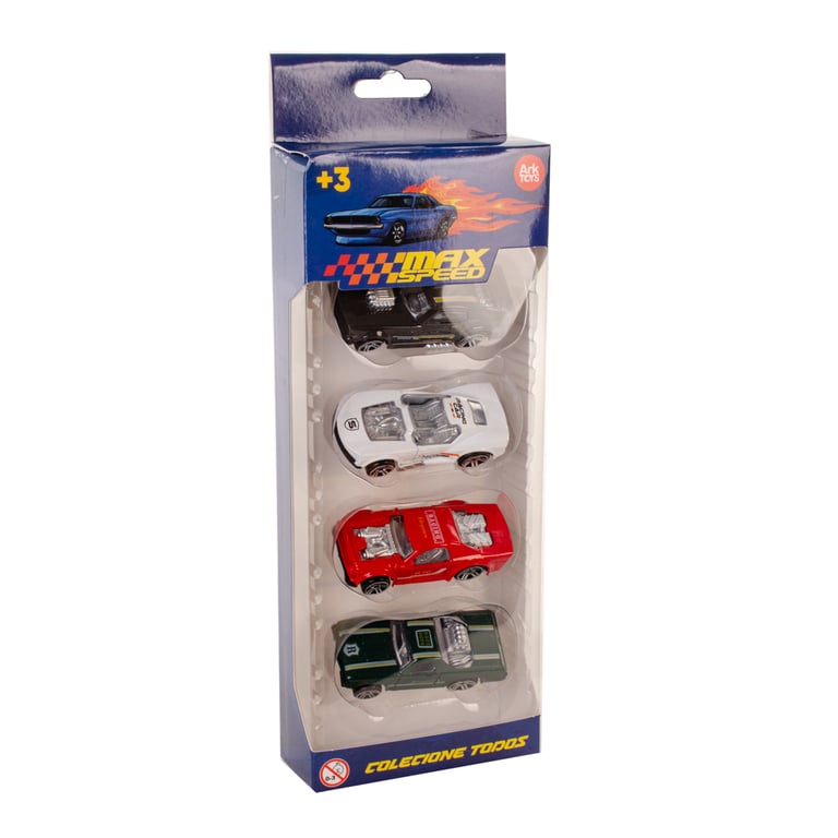 CARROS COLEÇÃO 2X3X7 CM METAL 4 PEÇAS MAX SPEED