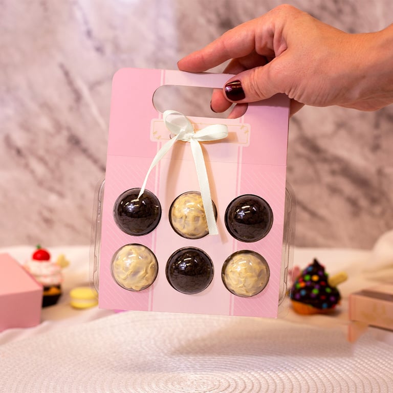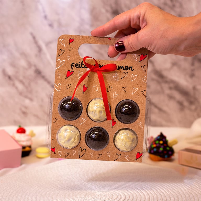CARTÃO COM BLISTER PARA 6 DOCES 16,5X13 CM MALETA COM FITA