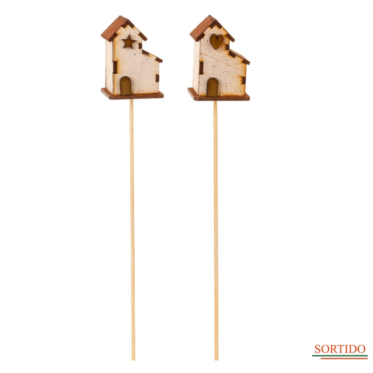 CASA DECORATIVA 35X5 CM MDF TELHADO DUPLO COM PALITO